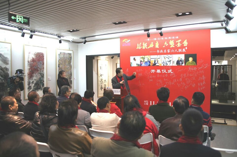 央廣網北京11月9日消息(記者陳雅萍)11月8日,作為一帶一路系列文化活動之一,“絲韻丹青 六藝墨香——書畫名家六人展”在北京知名藝術街區山水藝術大道拉開帷幕。此次書畫展匯集了景大文、王瑞林、黃健、林中陽、王敘祥、徐文漢六位書畫家的書法和繪畫精品三十六余幅。據介紹,此次聯手參展的六位書畫家都是近些年活躍在全國和地方的中堅力量,他們一直在藝術道路上勤奮耕耘,成績斐然;此次聯展展出的作品,從不同角度展現了他們不一樣的藝術魅力。