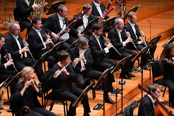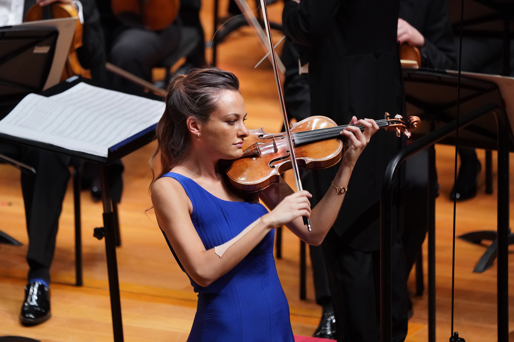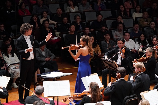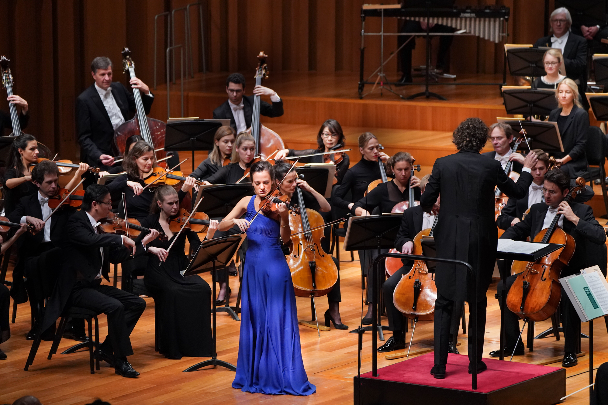 音樂會上半場,樂團在指揮羅賓·蒂恰蒂的帶領下,與本尼黛蒂共同完成了肖斯塔科維奇《第一小提琴協奏曲》的精彩演繹。該部作品的知名度雖不及十年前樂團帶來的門德爾松《E小調小提琴協奏曲》,但作曲家在古典藝術的堅實基礎上,用現代音樂語匯訴說著他對人類命運的深刻哲思,是20世紀小協作品中不可多得的珍品。音樂會現場,本尼黛蒂用手中的斯特拉迪瓦里名琴,深情演繹肖氏音符下一位歷經坎坷卻仍滿懷信念走向未來的“巨人”。小提琴獨奏被作曲家賦予了統領全曲的重任,炫麗輝煌的演奏技巧、近一個樂章的小提琴華彩,指揮家蒂恰蒂恰如其分地將獨奏與樂隊完美融入交響樂思維中,充分展現出樂團的“現代德意志精神”。