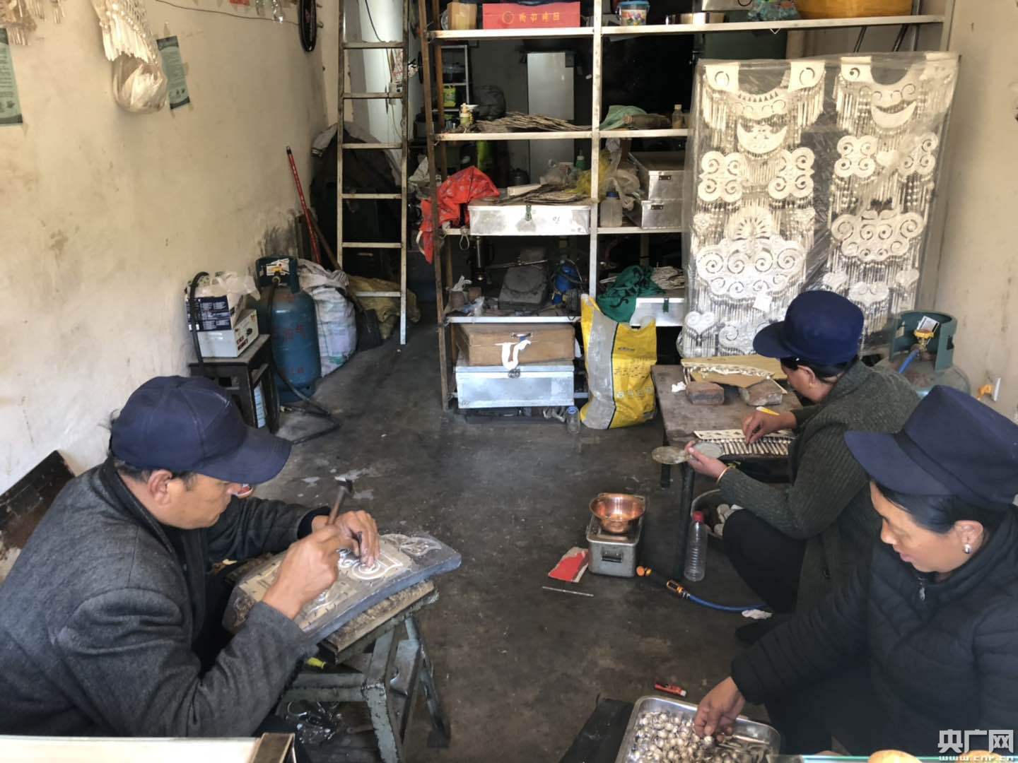 在布拖縣城有一條著名的銀器街,兩旁布滿銀飾店鋪,錘子擊打銅鏨子發出的“叮叮當當”聲不絕于耳,銀飾工匠們就在這里日復一日地用自己的雙手把時光、歲月打制進件件銀器中。