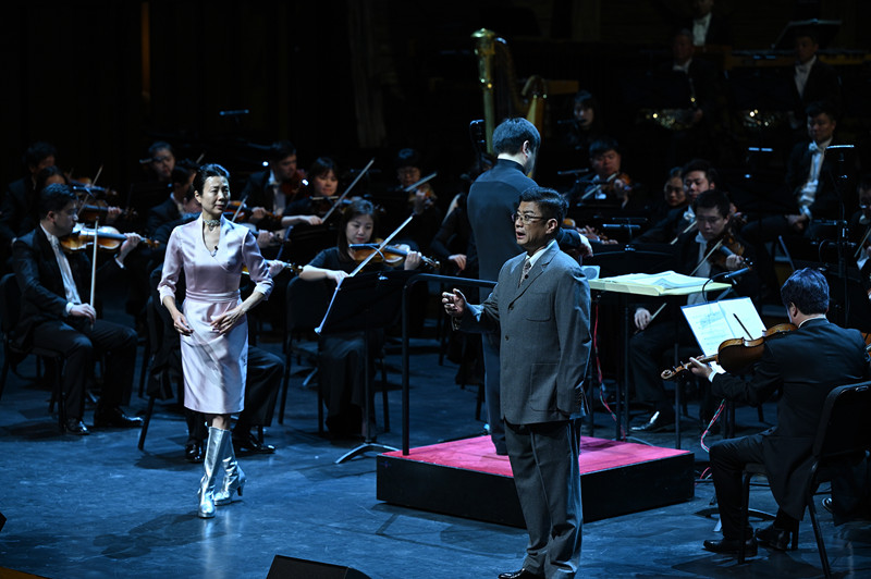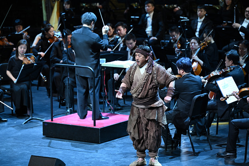 當晚的演出,在北京交響樂團藝術總監李飚執棒下,北京交響樂團、北京京劇院、北京音協合唱團三方聚力,以龐大的陣容將《京城大運河》演繹得氣勢如虹。每個章節的每首曲目所表達的內容和意境層層遞進、環環相扣。如第一樂章《一支塔影見通州》,描寫了通州漕運碼頭、驗糧樓、張家灣、通州號子等場景,而最后的聲聲號子,則引出下一樂章《天上的星星郭守敬》,講述大運河的修建。