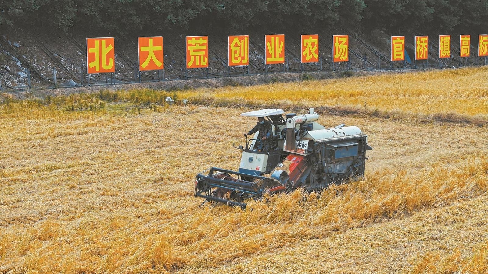 泉州南安官橋鎮:示范田晚稻收割作業忙