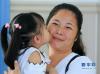 在親子游戲中,一名小女孩開心地親吻媽媽的臉。新華網 肖和勇 攝 -