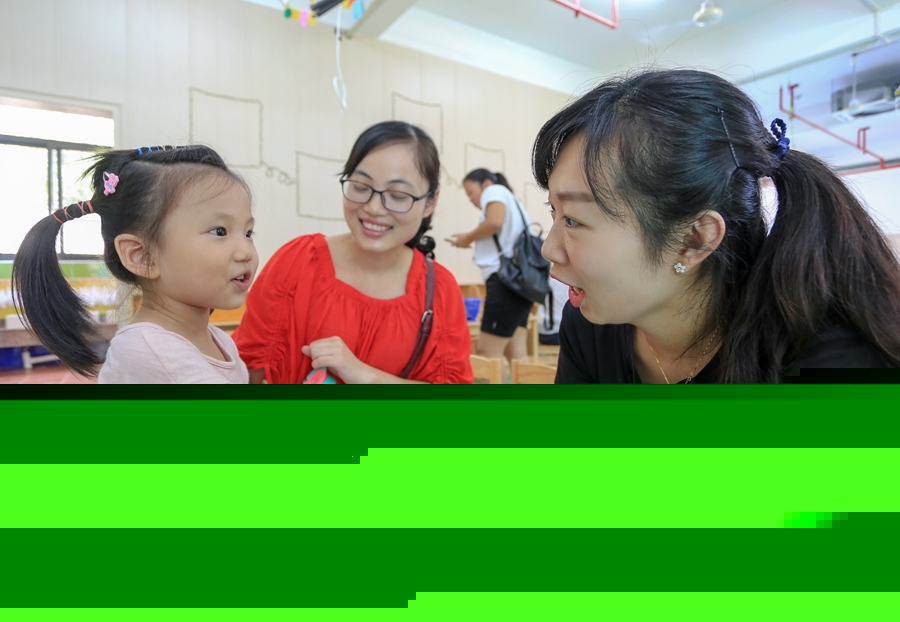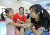 握個手,交朋友。一名小女孩正在與老師(右)互動。新華網 肖和勇 攝 -