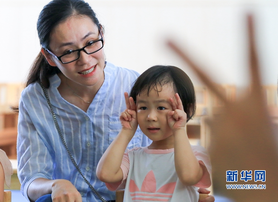 剪刀手或許不是孩子學會的第一個手勢,但在開園第一天,互動游戲中孩子怯生生地擺出手勢,已經是很大的進步。融入新環境,開始新生活。新華網 肖和勇 攝 -