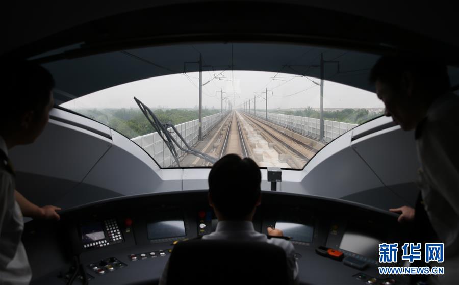 6月26日,工作人員在“復興號”G124次列車駕駛艙內駕駛列車。 當日,中國標準動車組“復興號”在京滬高鐵兩端的北京南站和上海虹橋站雙向首發,分別擔當G123次和G124次高速列車。“復興號”是由中國鐵路總公司牽頭組織研制、具有完全自主知識產權、達到世界先進水平的中國標準動車組。 新華社記者丁汀攝 -