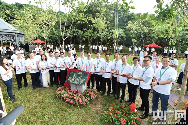 央廣網(wǎng)香港6月30日消息(記者周偉琪)由香港特區(qū)政府民政事務(wù)局、中央政府駐港聯(lián)絡(luò)辦青年工作部、中華全國青年聯(lián)合會秘書處及香港各界青少年活動委員會聯(lián)合主辦,慶祝香港回歸祖國20周年“共育紫荊”全球華人青年植樹活動在2017年6月30日于山頂花園舉行。活動召集了香港及內(nèi)地31個省市自治區(qū)、澳門、臺灣及海外的青年華人,均是1997年出生的“回歸寶寶”,由香港的“友誼大使”陪同,齊集香港,共聚山頂,共建同心林,同賀回歸盛事。
