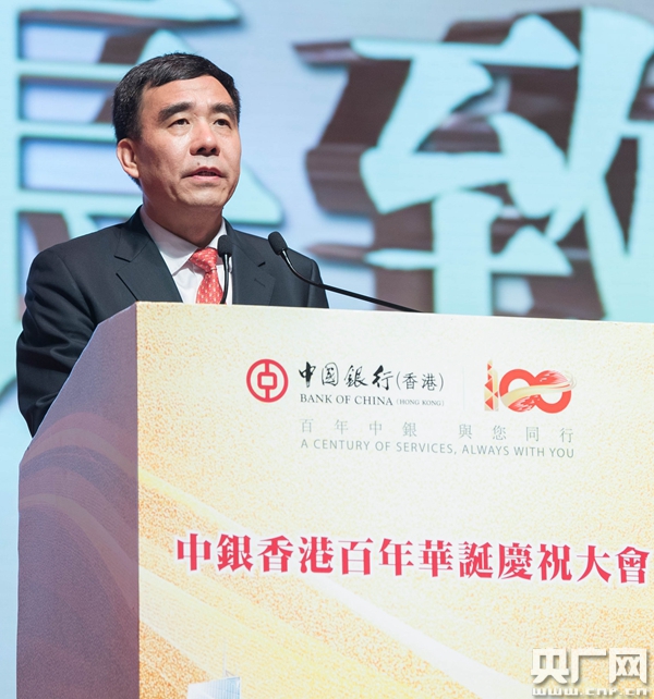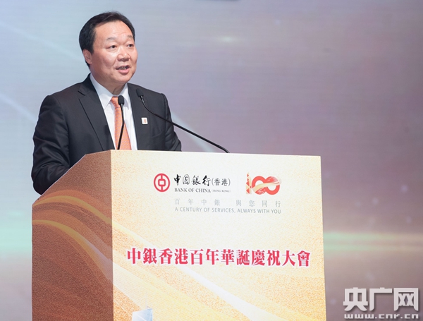 中國(guó)銀行及中銀香港董事長(zhǎng)田國(guó)立先生在歡迎辭中表示:“向香港各界長(zhǎng)期以來給予中銀香港的支持和幫助表示感謝,向中銀香港全體同事表示祝賀。中銀香港自設(shè)立之初,就自覺負(fù)起振興民族、溝通世界的責(zé)任,在各個(gè)歷史時(shí)期都發(fā)揮了重要作用。中銀香港百年歷史深刻地證明,擔(dān)當(dāng)社會(huì)責(zé)任、服務(wù)國(guó)計(jì)民生,才是銀行最大的價(jià)值。”對(duì)于中銀香港未來發(fā)展,田國(guó)立董事長(zhǎng)表示,“希望中銀香港繼續(xù)弘揚(yáng)愛國(guó)愛港光榮傳統(tǒng),在落實(shí)‘一國(guó)兩制’偉大構(gòu)想上身體力行、勇?lián)厝巍W鳛橄愀鄣貐^(qū)的發(fā)鈔行,中 銀香港要用最好的金融服務(wù)支持香港經(jīng)濟(jì)社會(huì)發(fā)展,打造‘一帶一路’金融大動(dòng)脈,全力支持粵港澳大灣區(qū)建設(shè);要發(fā)揮好全球最大人民幣清算行優(yōu)勢(shì),全力支持香港人民幣離岸中心建設(shè);要加快向區(qū)域化大銀行轉(zhuǎn)型,為維護(hù)香港長(zhǎng)期繁榮穩(wěn)定、提升香港國(guó)際 金融中心地位作出更大的貢獻(xiàn)。”