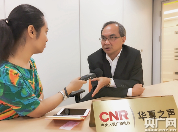 香港貿易發展局研究總監關家明先生接受央廣記者專訪,攝影周晴。