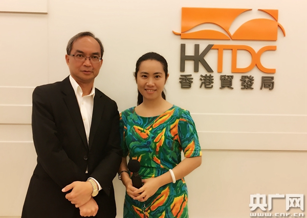 香港貿易發展局研究總監關家明先生接受央廣記者陳菲專訪,攝影周晴。