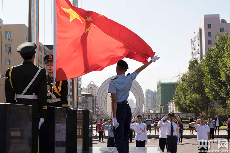 港青擔任旗手和護旗手,在哈工大舉行升旗儀式