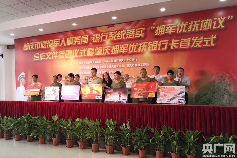 2019年6月26日,肇慶發行擁軍優撫銀行卡。(央廣網發 王永強攝)