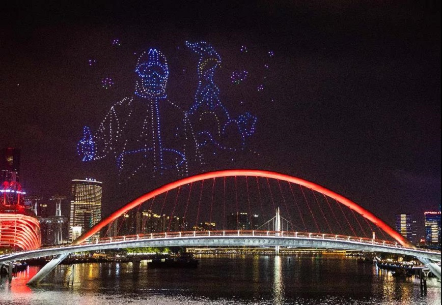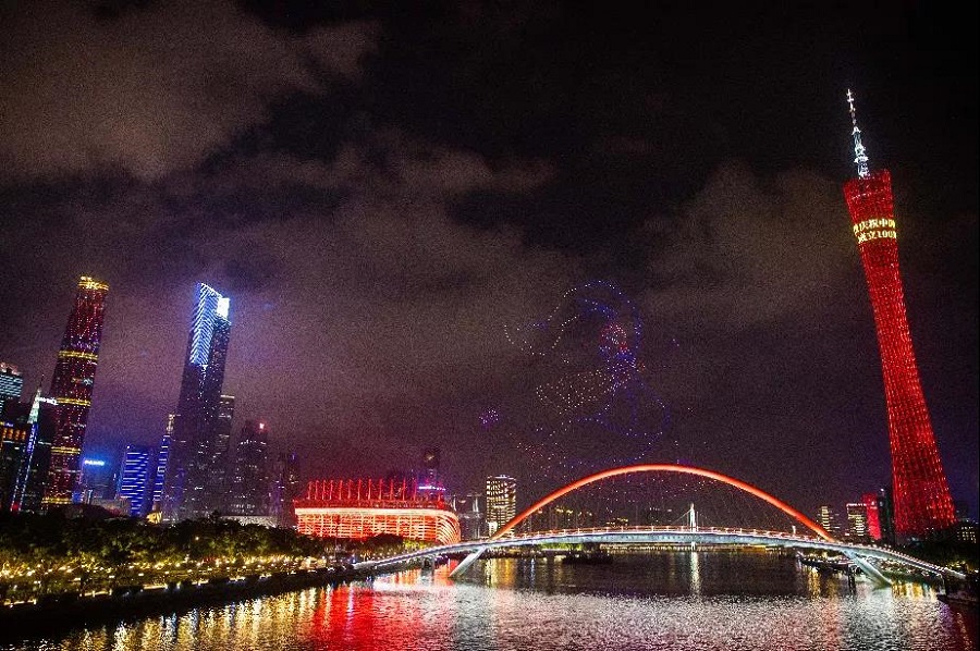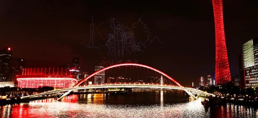 無人機編隊在廣州海心沙夜空