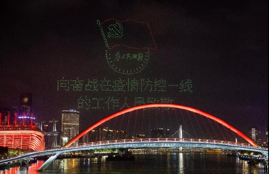 無人機勾勒出奮戰于一線的防疫人員形象