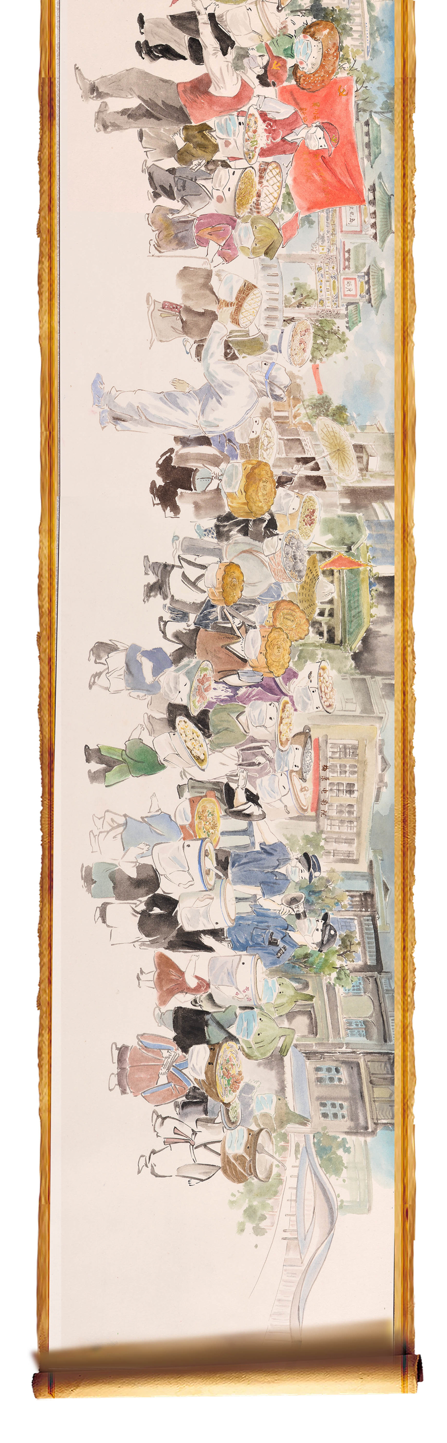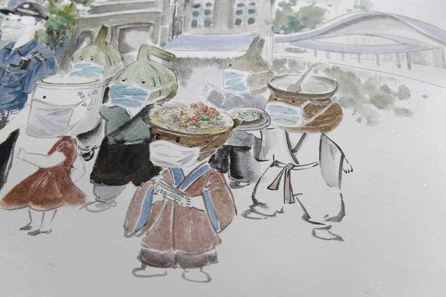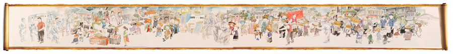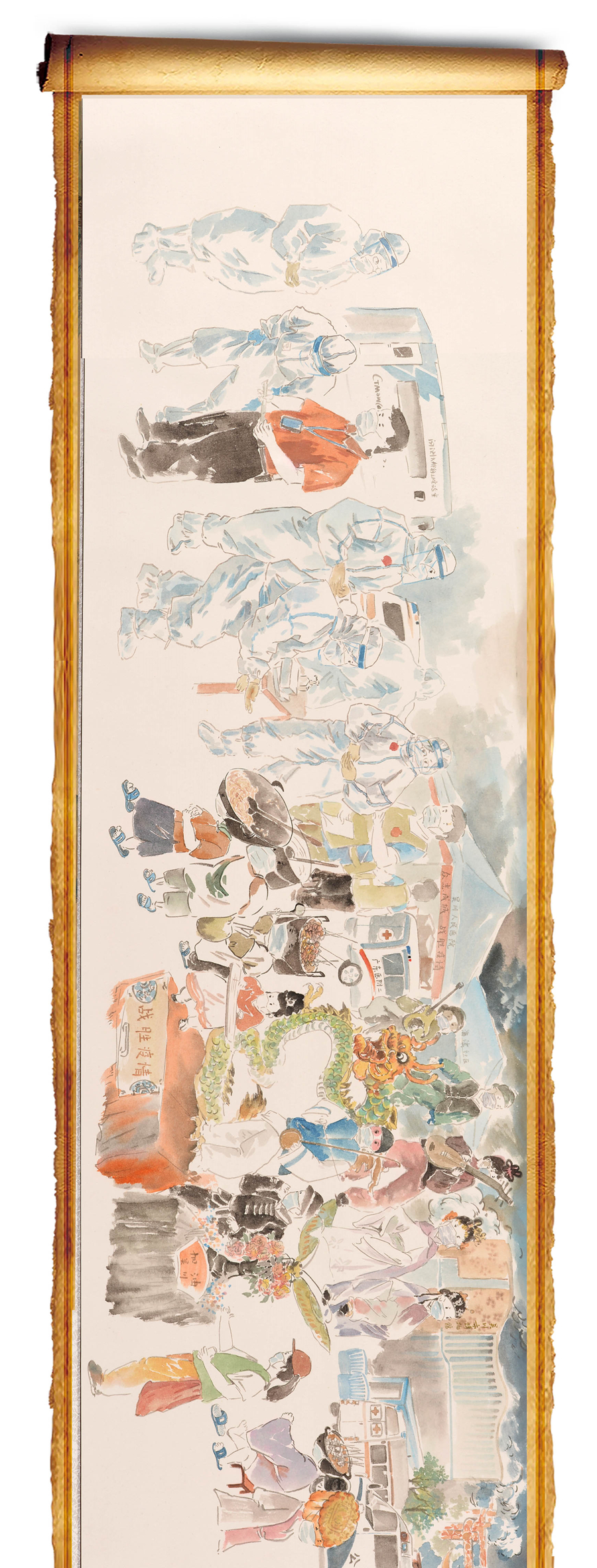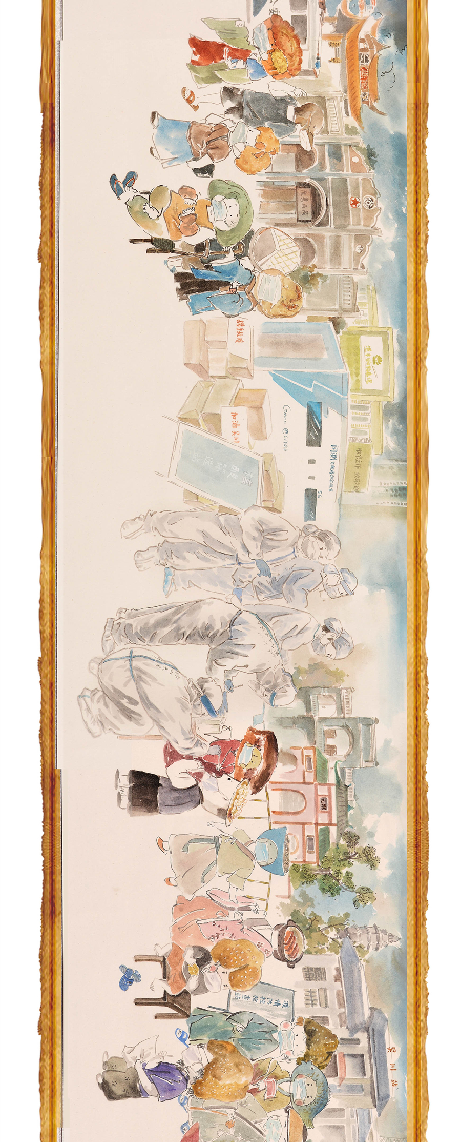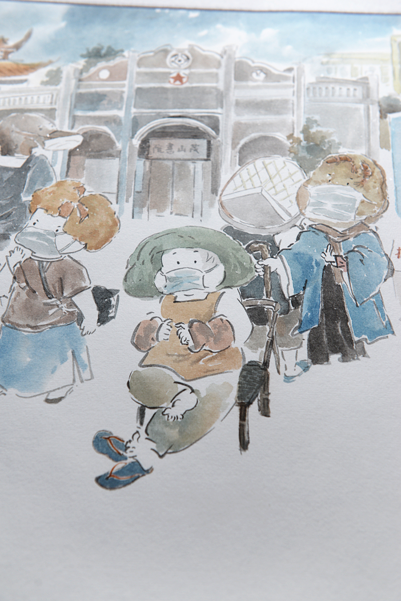“吳川卷寄托的是我對家鄉的思念,所以在構圖上也會更直白一些,就是用長卷的形式,把大家排隊做核酸的場景表現出來。”陳志杰解釋說。