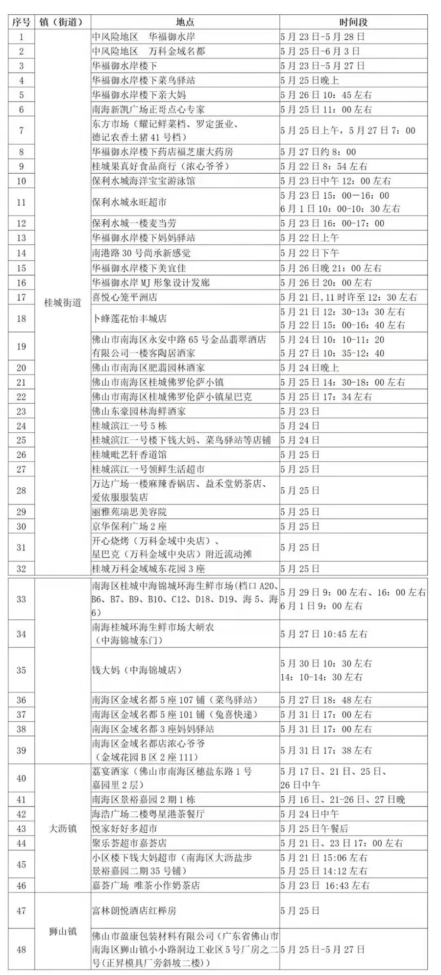 央廣網佛山6月8日消息(記者夏燕 佛山電臺 付國華)6月8日,佛山市南海區新冠病毒肺炎疫情防控指揮部辦公室通報了近期新冠病毒感染者涉及的48個重點場所或小區。