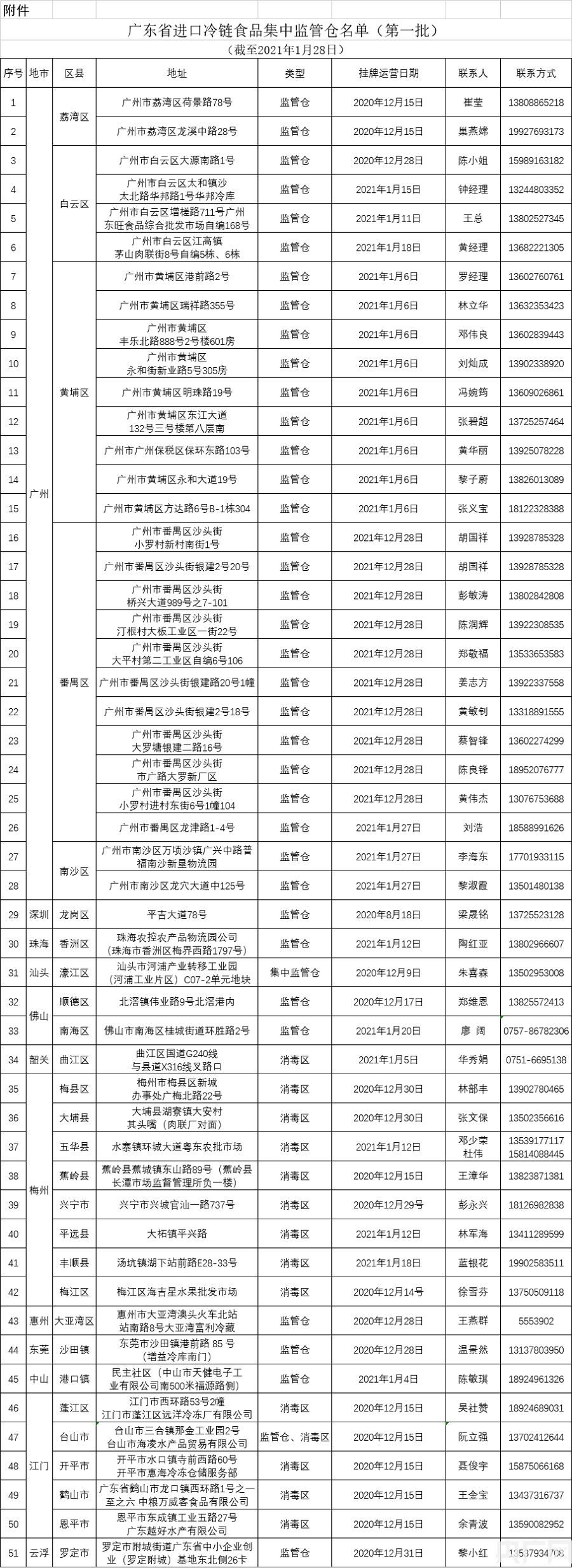 附件:廣東省進口冷鏈食品集中監管倉名單(第一批)