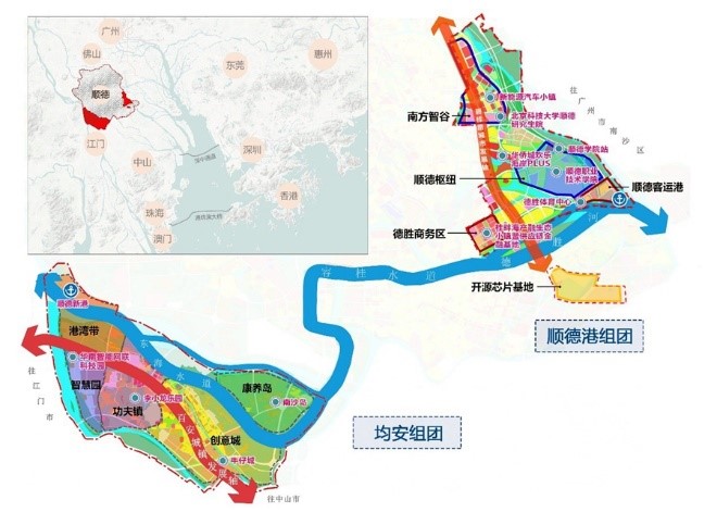 據了解,合作區規劃面積約100平方公里,包括順德港和均安兩個組團,將依托順德客運港、順德新港貨運港強化與廣深港澳等中心城市的交通聯系,帶動人流、物流、資金流等要素順暢流動和集聚,形成“雙港領航,雙團聯動”的空間格局。