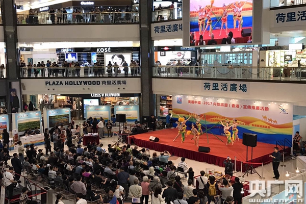 記者在現(xiàn)場看到,荷里活廣場一層中間地帶,來自內地旅游部門和業(yè)界代表組織的展位擺放的整整齊齊。除了文字圖片介紹資料,包括兼職、刺繡在內的非物質文化遺產展示吸引了不少香港民眾的目光。而在舞臺之上,部分少數(shù)民族美輪美奐的表演,更贏得陣陣掌聲。