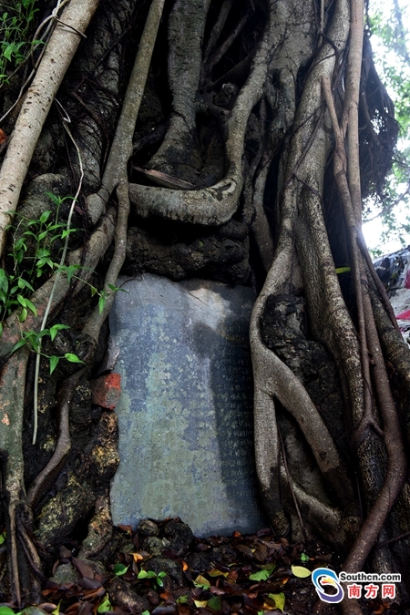 稀奇!惠州一清代石碑“長”在500歲古榕樹上 來看碑文寫的啥?