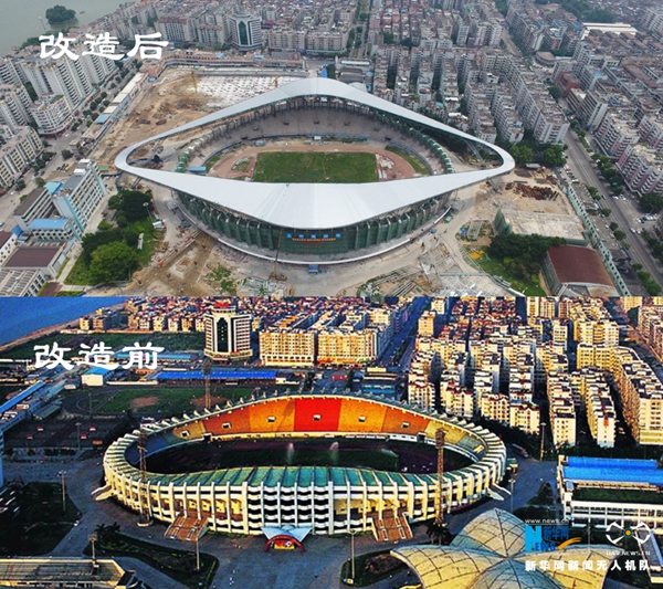 肇慶市體育中心升級(jí)改造后與改造前對(duì)比。新華網(wǎng)發(fā)
