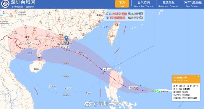 據深圳天氣微博消息,臺風“天鴿”剛走,又有一個新的熱帶低壓在菲律賓以東洋面生成,該熱帶低壓24日17時距離深圳1586公里。