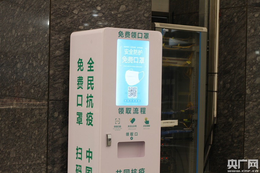 站內免費口罩機,旅客可自助領取。(央廣網發 彭洲 攝)