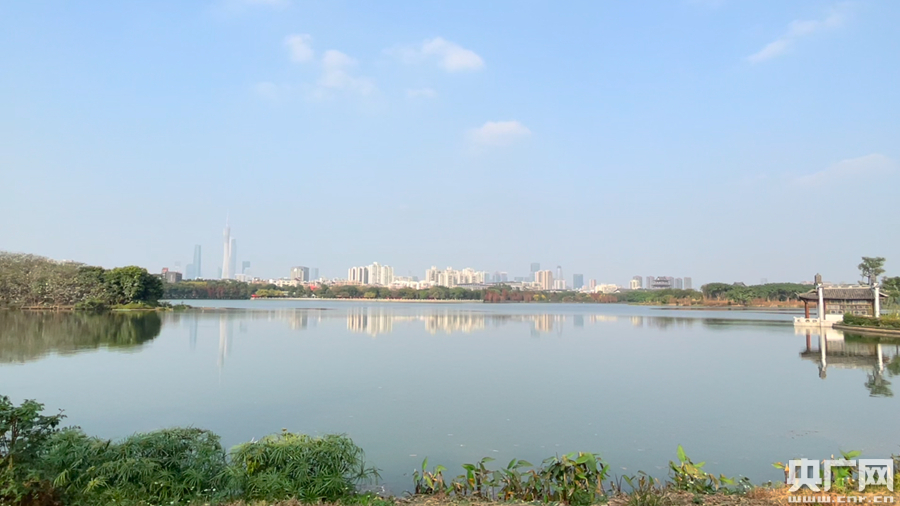 海珠湖遠處約3公里的地方就是廣州塔(央廣記者 王志達 攝)