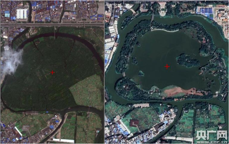 2009年(左)與2018年(右)海珠湖衛(wèi)星圖對比(央廣網發(fā) 資料圖)