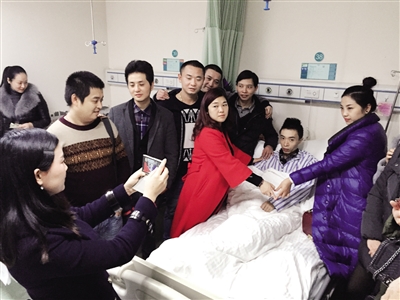 昨日,市腫瘤醫(yī)院病房,同學(xué)們從合川趕來看望劉錕。