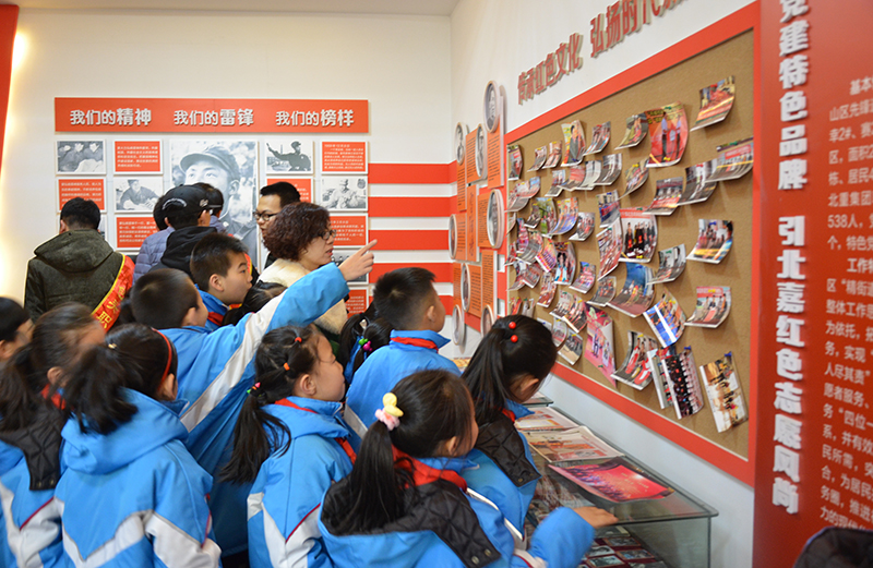 學生參觀陳文學紅色志愿服務工作室。圖片來源:先鋒道街道辦事處