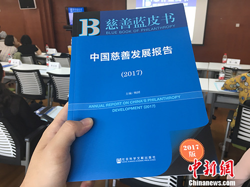 圖為《慈善藍皮書:中國慈善發(fā)展報告(2017)》。湯琪 攝