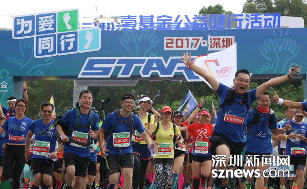 7月8日下午,壹基金為愛同行·2017(深圳)公益健行活動在深圳市坪山體育中心鳴槍開跑。今年的活動口號是“為愛同行,沒你不行”。