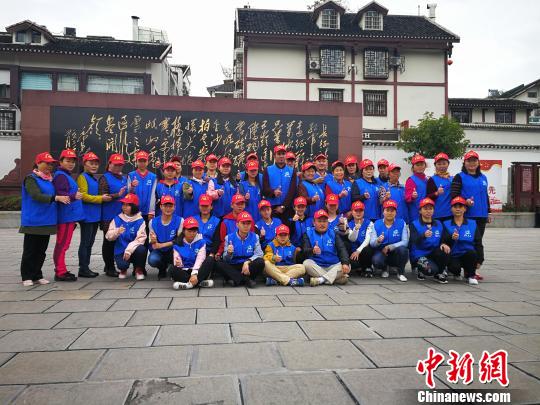做完服務(wù)可漢與其他義工合影留念。 周嫻 攝