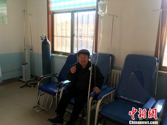 圖為75歲的村民張尚中在中心村衛生室輸液。談到現在就醫的便利,他豎起大拇指!±钣 攝