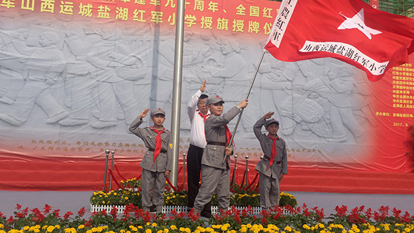 9月18日下午,中國工農紅軍山西運城鹽湖紅軍小學舉行授旗授牌感恩捐贈儀式。鹽湖區十四小更名為“中國工農紅軍山西運城鹽湖紅軍小學”,正式加入全國紅軍小學隊伍,成為全國掛牌的231所紅軍小學之一。