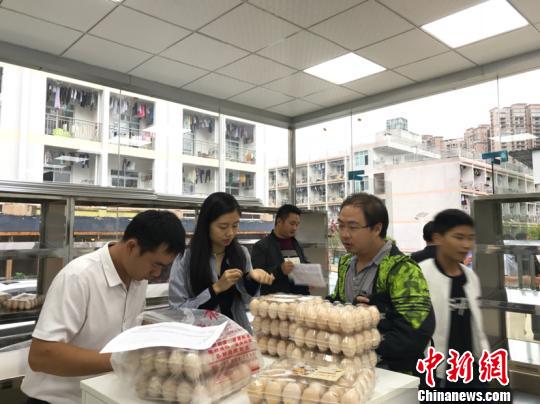 圖為師生正在黔南師院“校農結合”孵化中心領取雞蛋!±涔鹩 攝