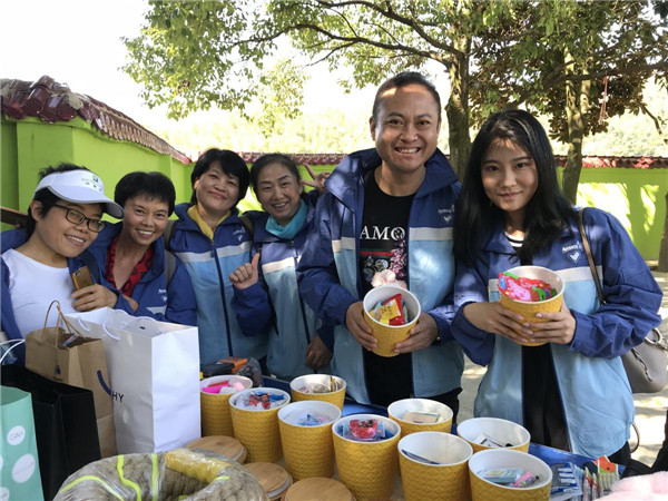 經過三小時的車程,終于到達了目的地,車輛陸續停靠在路邊時,已經有不少孩子圍了上來質樸的臉龐、笑臉盈盈的,甚是可愛孩子們一點也不認生,很快就和志愿者們嬉笑打鬧成一團。
