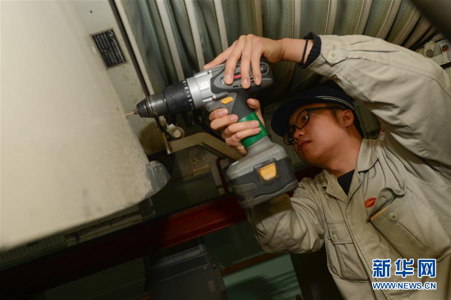 2月14日晚,福州電務段車載信號工在福州南動車所檢查動車車頂無線天線。春運以來,福建省近3000名高鐵動車維護人員日夜堅守崗位,通宵達旦對181組高鐵動車進行全面檢查維護,確保每輛高鐵動車安全上線,平穩運行。