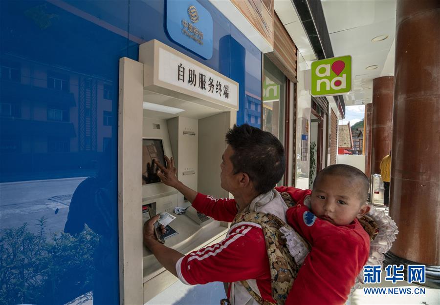 4月13日,云南省貢山縣獨龍江鄉村民在自助終端上辦理電信業務。