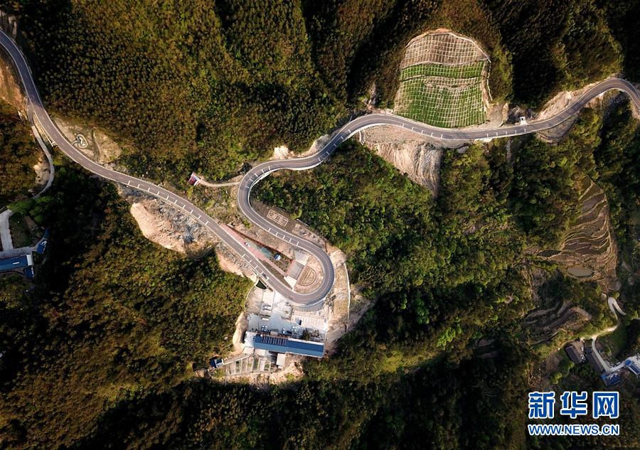 這是在霍山縣太陽鄉拍攝的大別山旅游扶貧快速通道(4月18日無人機拍攝)。