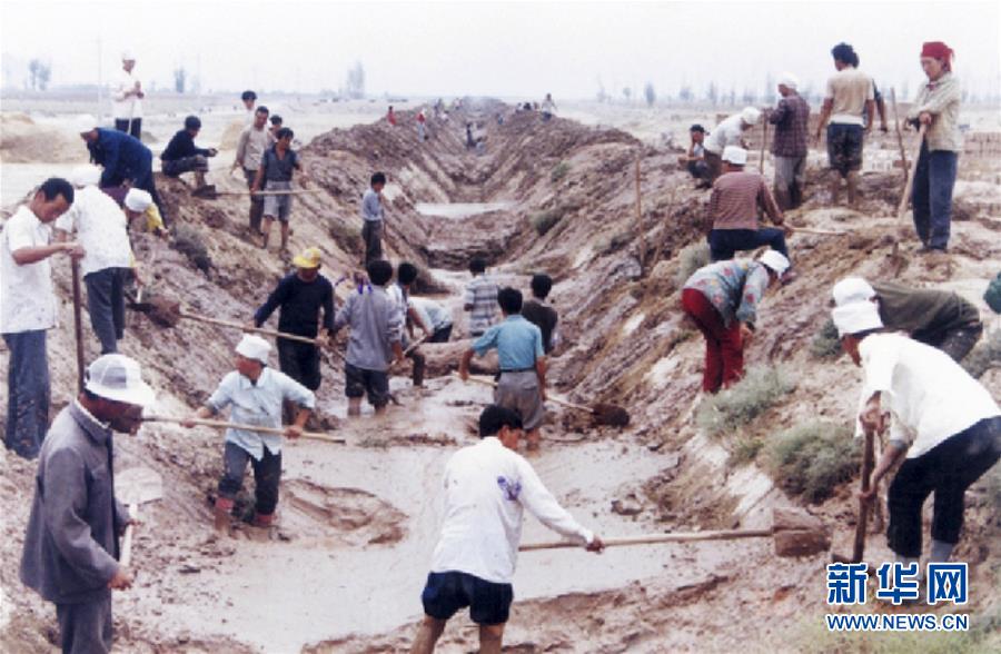 永寧縣閩寧鎮(zhèn)建設(shè)初期,群眾在進行農(nóng)田水利建設(shè)。攝于1997年7月。