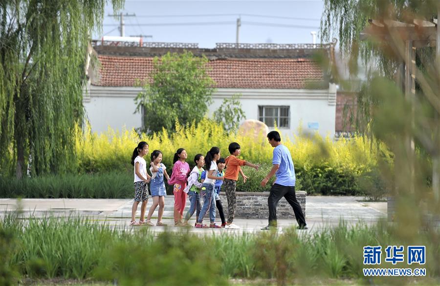 永寧縣原隆村的孩子們在新居前的休閑廣場上玩耍。攝于2018年8月。