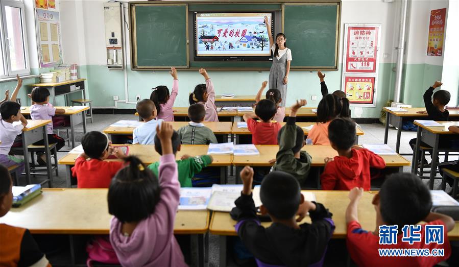 永寧縣原隆村原隆小學(xué)老師用電子屏給孩子們上課。攝于2019年9月。