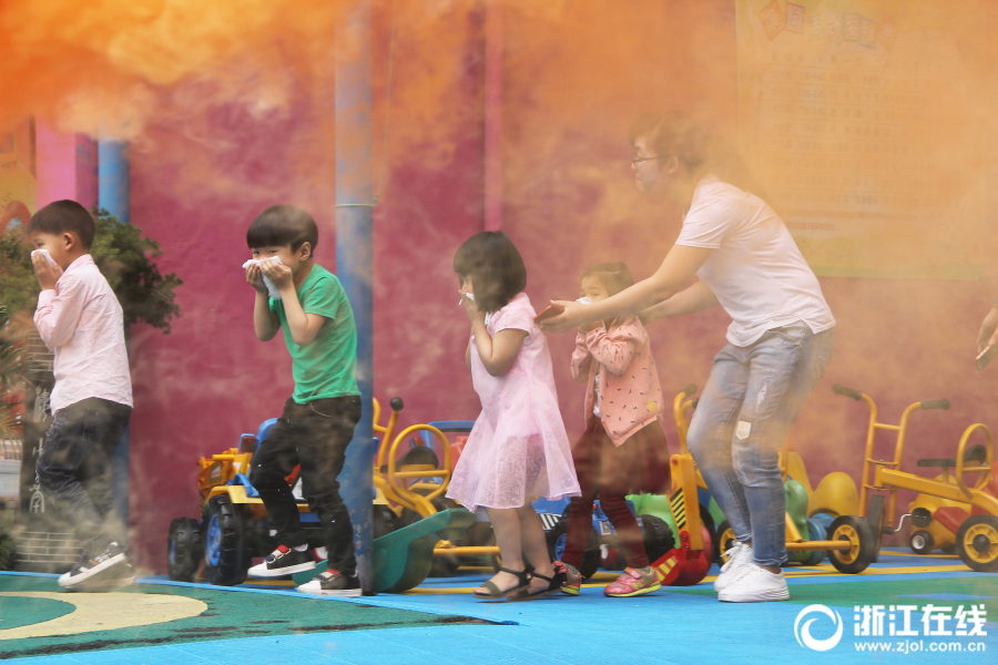 消防演練進(jìn)幼兒園 萌娃體驗(yàn)火災(zāi)逃生