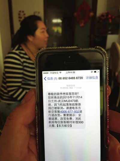 4月11日,裴女士給記者出示了從銀行打印的清單,回執單顯示:157893.66元轉入他人賬號。而這一切都源于一條手機短信:“尊敬的裴女士您好!您乘坐的2015年11月14日蘭州至武漢MU2473航班,因飛機起落架故障原因已被取消。請速電東方航空客服4006-877-932進行退改簽。”