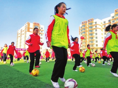 11月30日,2017年國(guó)際足聯(lián)——追夢(mèng)女孩足球節(jié)活動(dòng)在蘭州新區(qū)第五小學(xué)拉開(kāi)帷幕。200多名3至6年級(jí)的女學(xué)生在老師的指導(dǎo)下,通過(guò)開(kāi)展手拉手傳球接力賽、協(xié)調(diào)性控球、射門(mén)接力賽、趣味顛球賽、五人制足球比賽、親子足球賽等活動(dòng),在綠茵場(chǎng)上享受足球運(yùn)動(dòng)帶來(lái)的快樂(lè)。