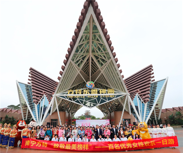 優秀女性代表團在南寧方特合影(央廣網發 南寧方特東盟神畫主題樂園供圖)