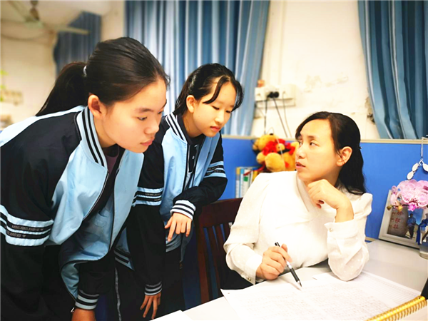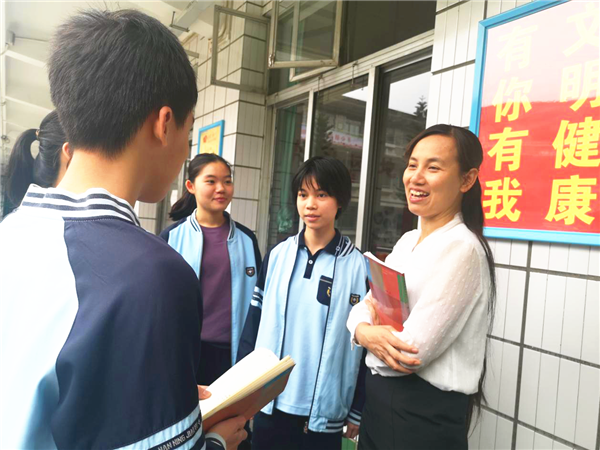 蘇家珍(右一)在課間與學生互動(央廣網發 農顯峰攝)