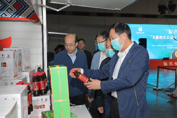 參加啟動儀式的領導參觀直播產品 (央廣網發 鄭肖君攝)