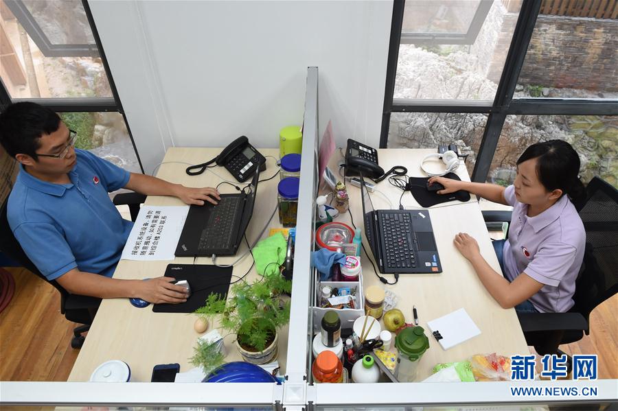 孫純(右)與石向瑋在辦公室內(nèi)工作。新華社記者歐東衢 攝 在項(xiàng)目組,孫純負(fù)責(zé)被稱為FAST“大腦”的總控設(shè)備運(yùn)行與控制。和石向瑋完婚后,兩人在這個“聆聽宇宙最近的地方”,以“探尋宇宙奧秘”代替了新婚蜜月旅行。 -